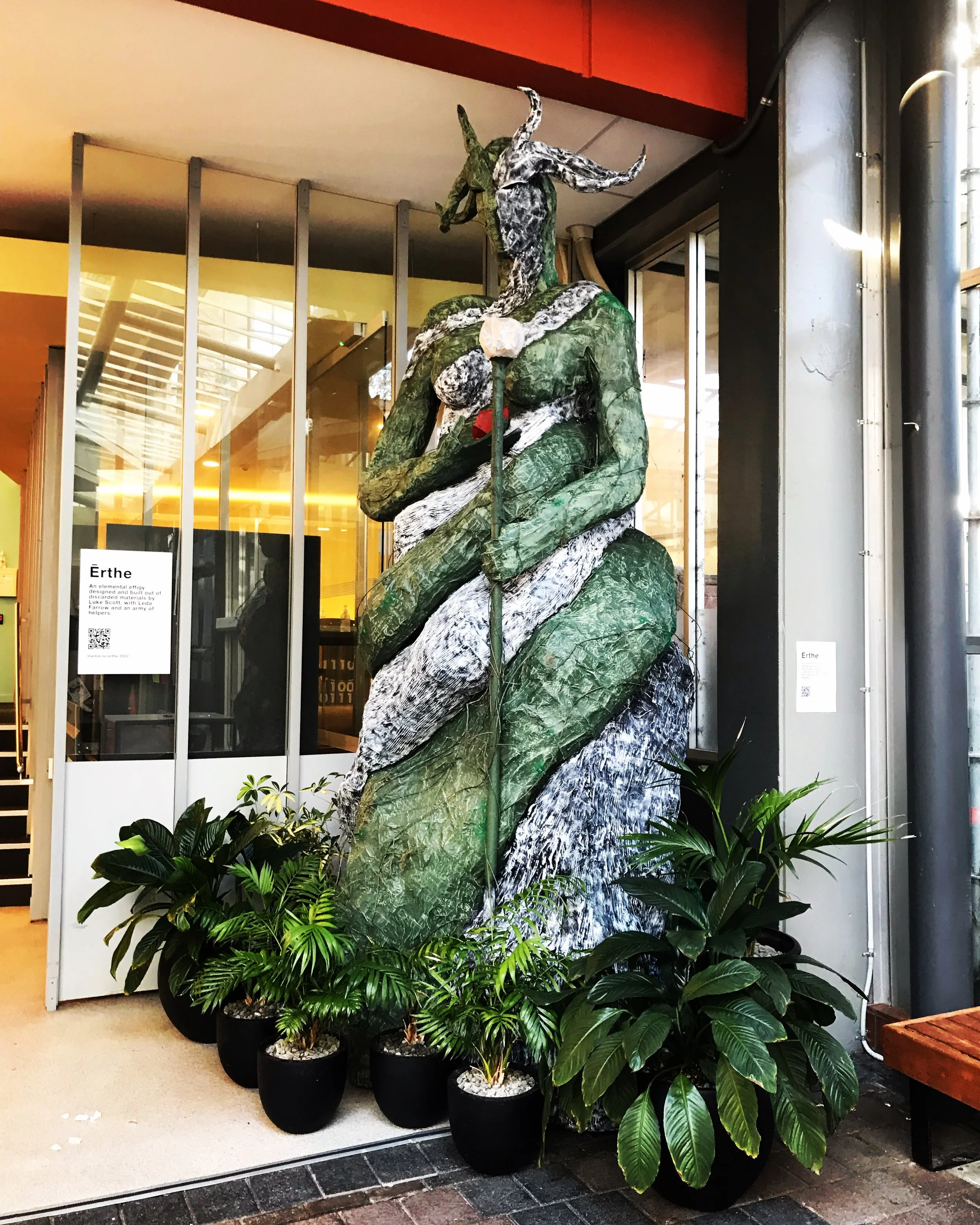 We are delighted to present Ērthe, an elemental effigy designed and built almost entirely out of discarded materials by Luke Scott, with Leda Farrow and an army of helpers. You can visit Ērthe daily and write notes to it (for example something you wish to dispel or happen in the future). These notes will go up in flames on the night of April 30, as part Samhain celebrations at Princess Bay (more details coming shortly!)